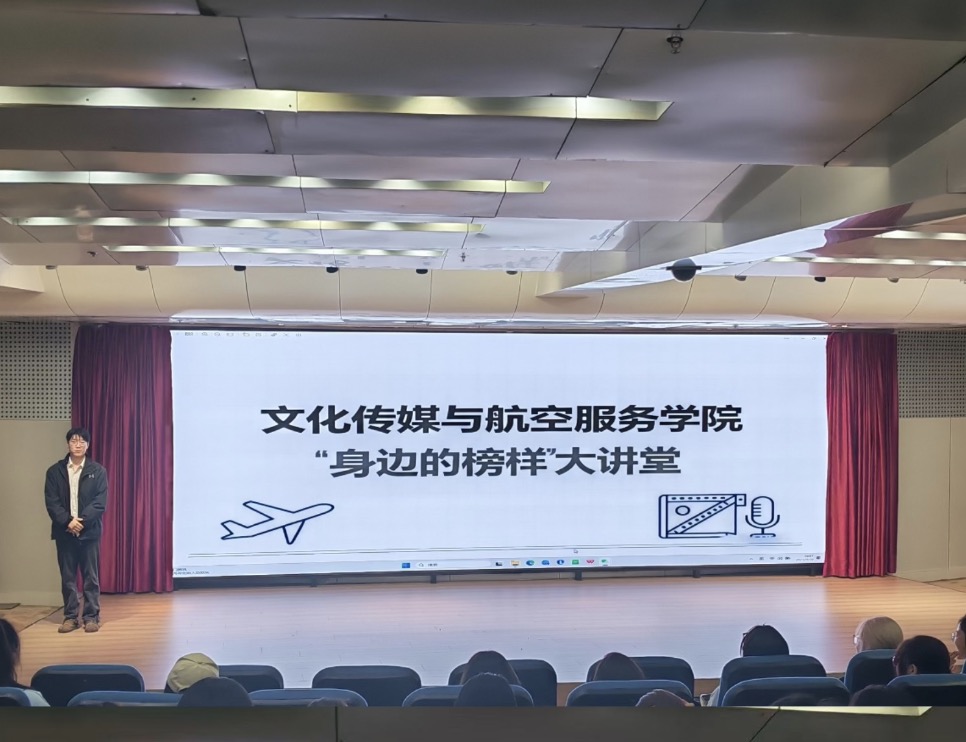 近日,文化传媒与航空服务学院举办第32期“身边的榜样”大讲堂活动。活动邀请学院2022级优秀学生代表张泽同、葛筠昭、毋小康、周诚杰,为2025级新生讲大学生涯“示范课”。